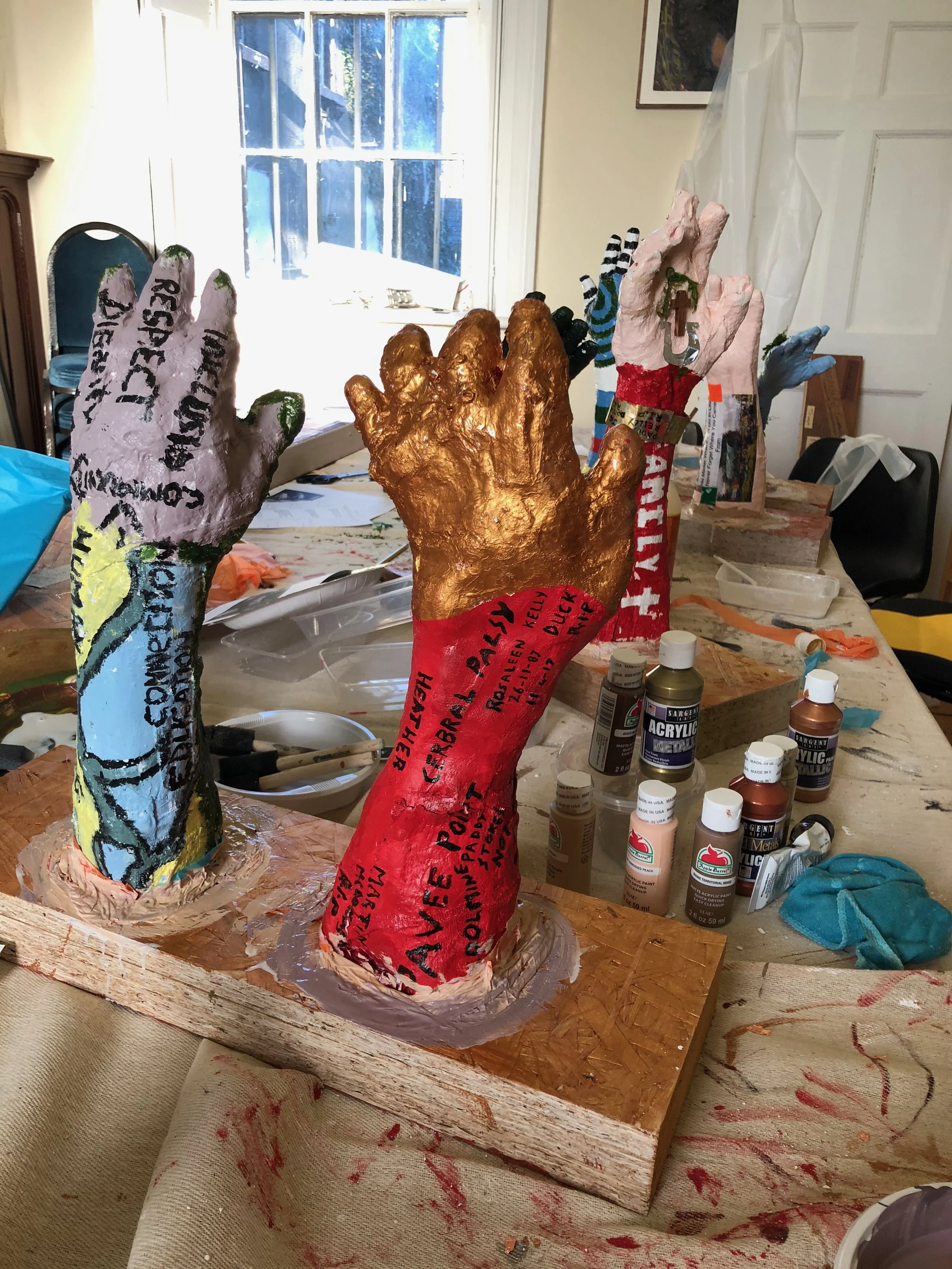 We created a permanent installation made out of plaster casting our arms, which symbolized the healing that needs to happen. Participants worked together and powerful conversations were exchanged throughout.